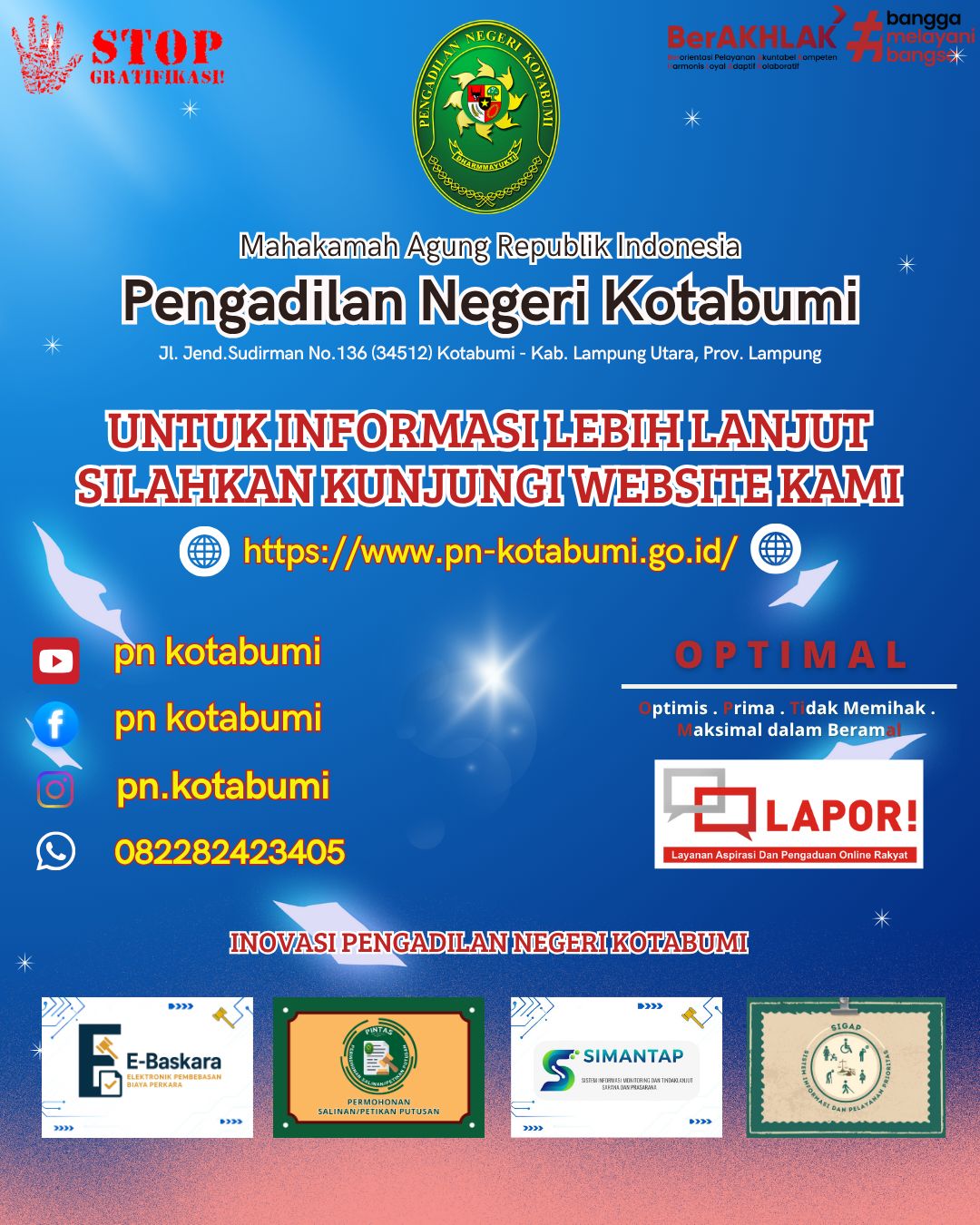Aplikasi Sistem Informasi Penelusuran Perkara (SIPP), merupakan aplikasi administrasi dan penyediaan informasi perkara baik untuk pihak internal pengadilan, maupun pihak eksternal pengadilan. Pengunjung dapat melakukan penelusuran data perkara (jadwal sidang sampai dengan putusan) melalui aplikasi ini.