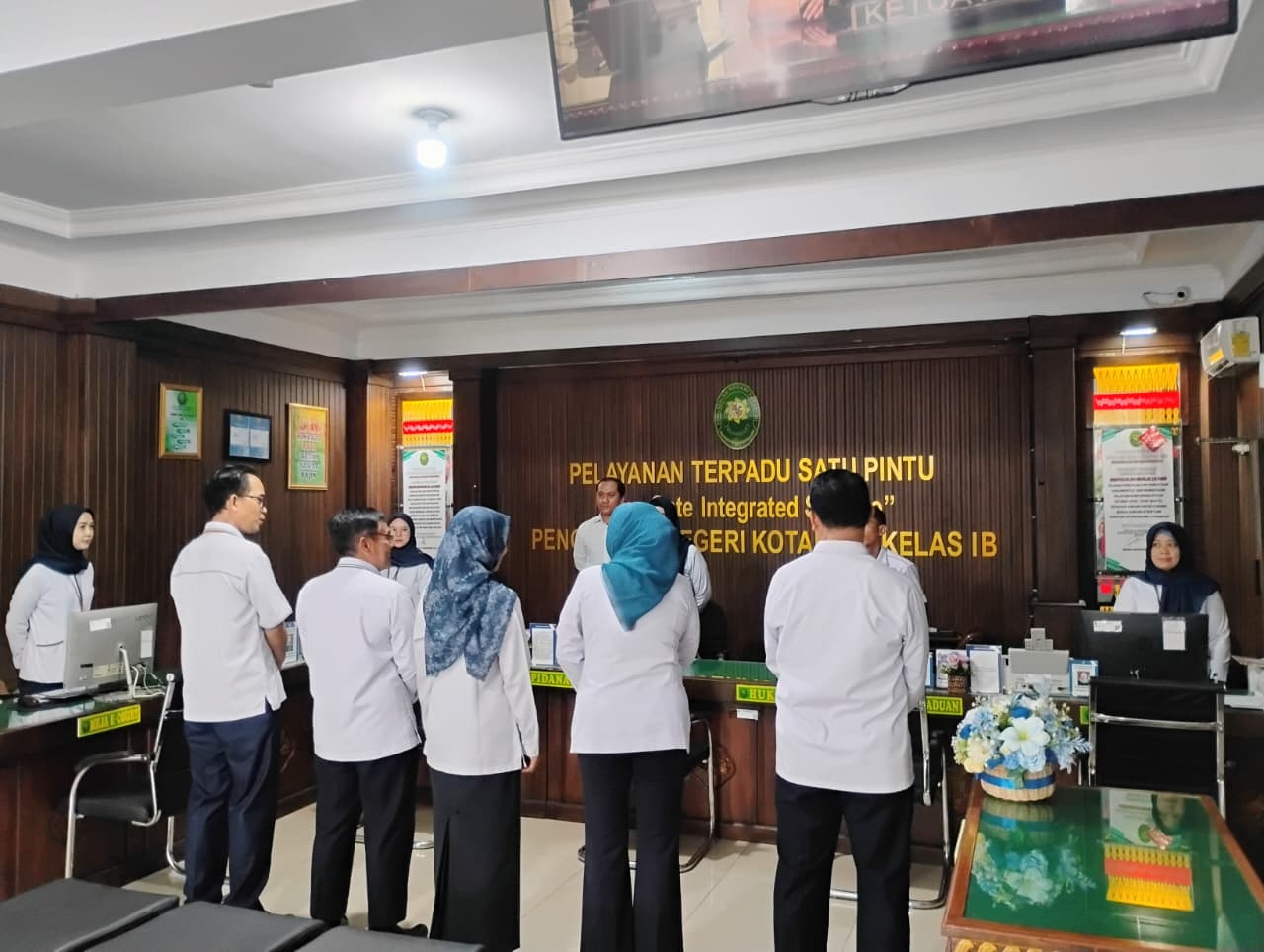 Kotabumi | Dalam rangka memastikan konsistensi kualitas pelayanan publik yang prima, Pengadilan Negeri Kotabumi menyelenggarakan briefing rutin bagi petugas Pelayanan Terpadu Satu Pintu (PTSP) pada Senin (02/03/2026). Kegiatan ini berlangsung di area meja layanan PTSP dan menjadi agenda krusial untuk menjaga standar profesionalisme aparatur di awal pekan.