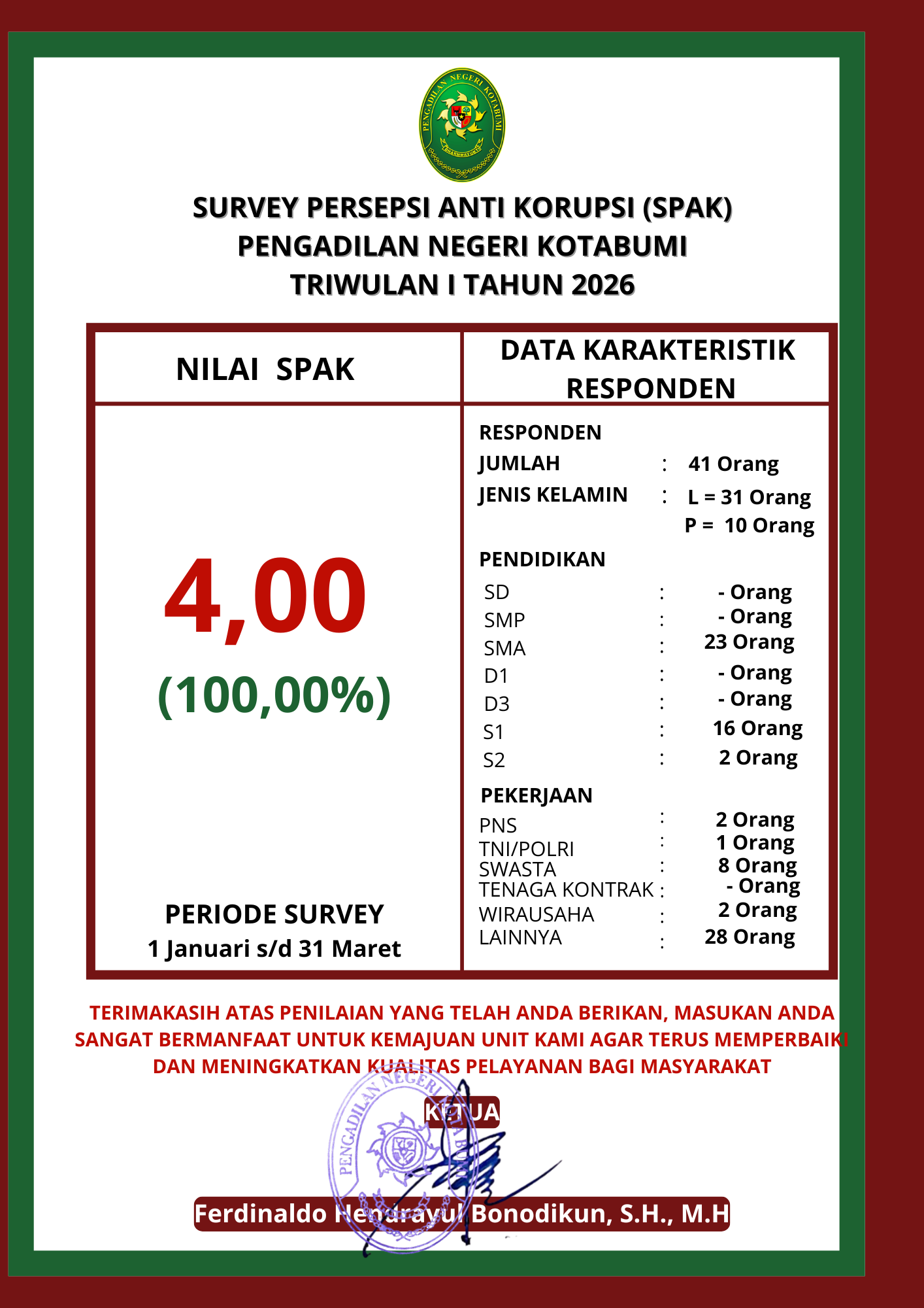 Selain soal kedisiplinan, pihak pengadilan juga menyoroti pentingnya etos kerja yang konsisten guna memberikan pelayanan prima bagi para pencari keadilan di wilayah Kotabumi.