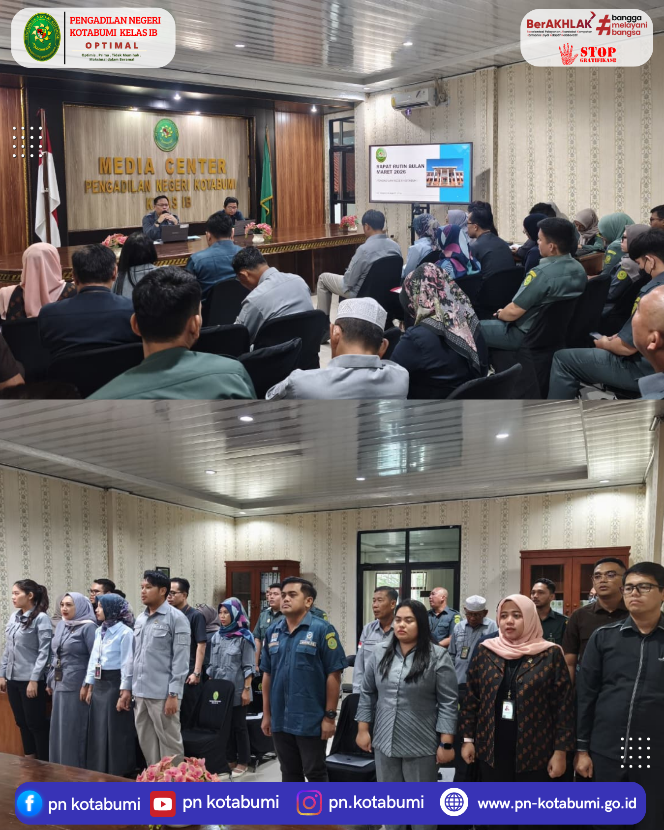 KOTABUMI – Pengadilan Negeri (PN) Kotabumi menggelar rapat rutin bulanan sebagai bentuk komitmen dalam memonitoring dan mengevaluasi kinerja seluruh aparatur, Rabu (11/3/2026).