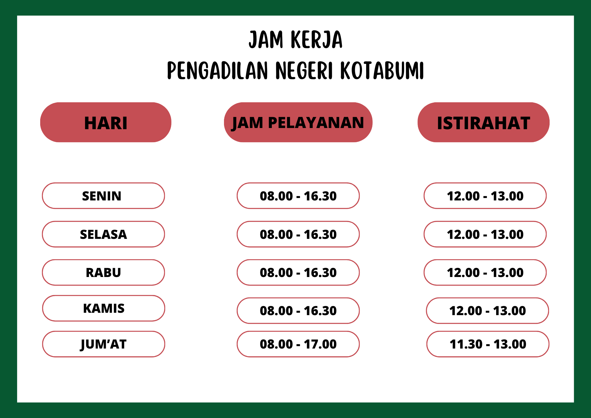 Jam Kerja dan Pelayanan PTSP Pengadilan Negeri Kotabumi