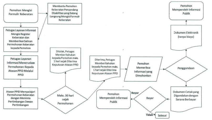- Dalam hal Pemohon Informasi Publik datang langsung dan merupakan Penyandang Disabilitas maka dapat dibantu oleh Petugas Layanan lnformasi dalam peng1s1an formulir keberatan.