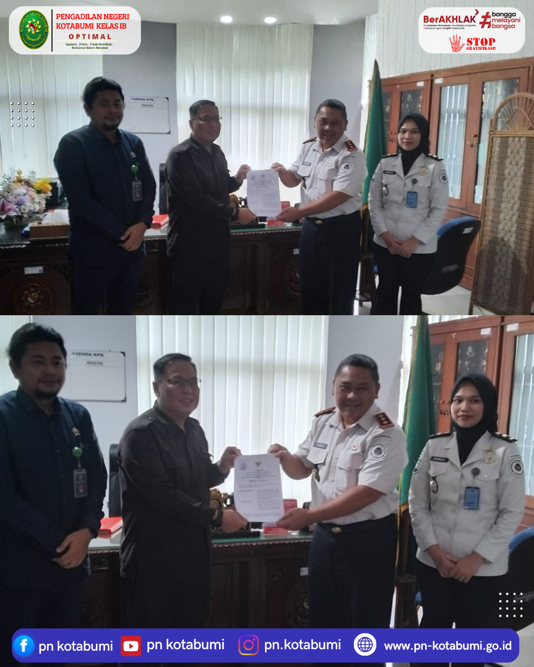 Penyerahan Dokumen Kerjasama langkah-langkah Penanganan pidana Kerja Sosial dan Pidana Pengawasan oleh Kepala Balai Pemasyarakatan Kelas II Kotabumi kepada Ketua Pengadilan Negeri Kotabumi